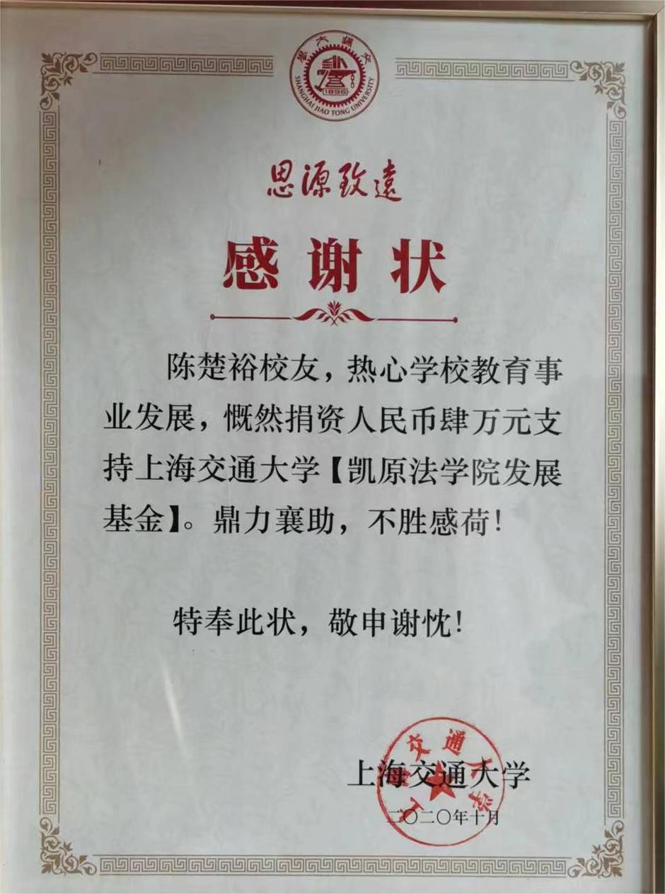 律所主任陈楚裕律师累计向上海联劝公益基金会捐款1250元